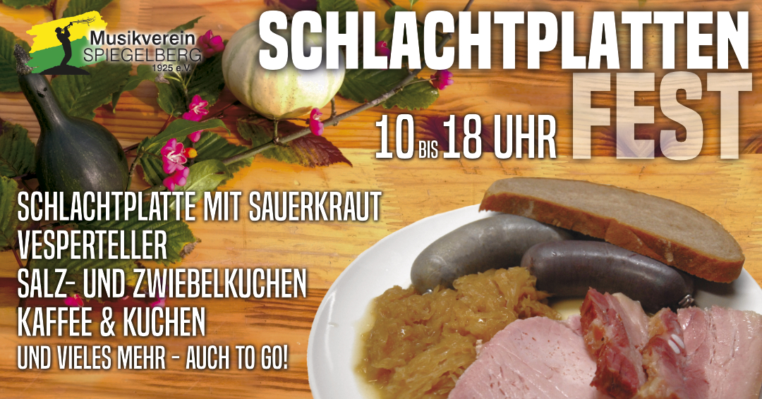 10:00 bis 18:00 Schlachtplattenfest 19. Oktober @ 10:00 bis 18:00 Schlachtplattenfest Dazu laden wir alle sehr herzlich ein die mal wieder Lust auf Besenstimmung haben. Kostenlos